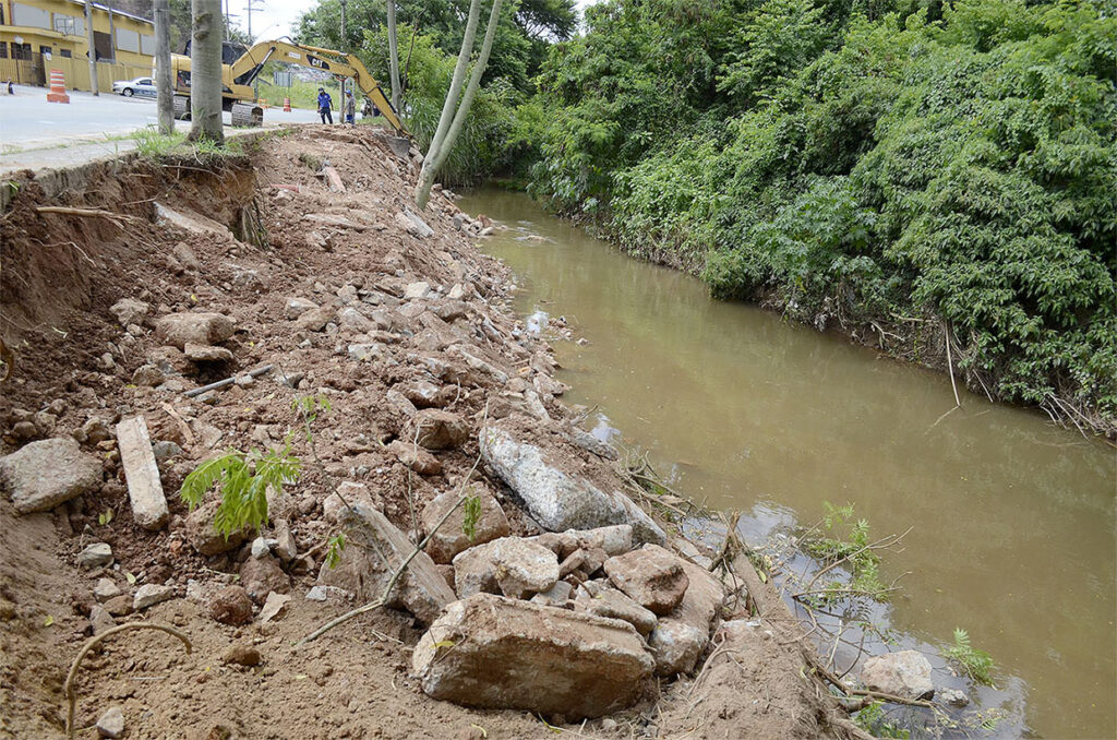 A Prefeitura de Várzea Paulista continua recuperando a Avenida Marginal do Rio Jundiaí, que sofreu deslizamentos em alguns trechos por conta das fortes chuvas de dezembro. A equipe da Unidade Gestora de Infraestrutura Urbana e Obras Públicas atua, nesta quinta-feira (16), em um ponto crítico próximo ao posto de gasolina que dá acesso à Vila Real (sentido Jundiaí). Frentes de trabalho da pasta municipal também estão realizando roçagens de mato alto, na Avenida Bertioga, às alturas dos números 1385 (sentido bairro) e 655 (sentido Centro).