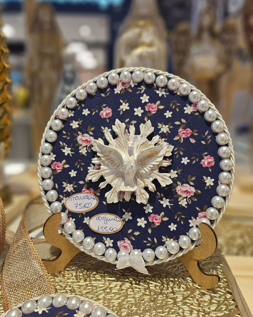 em resina, laços, bonecas, costura criativa, com preços a partir de R$ 10,00. Uma
