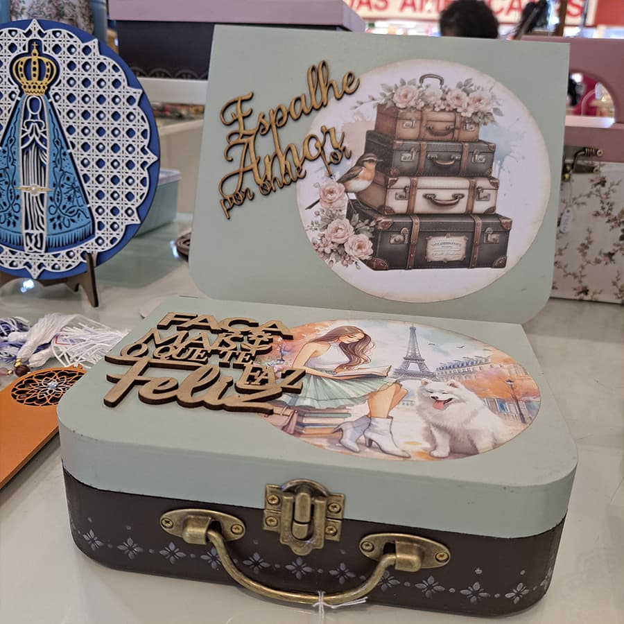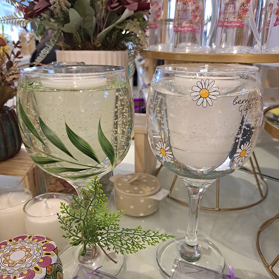 No local, estão expostas velas, mandalas, MDF decorados, arranjos, bonecas e produtos para bebês e crianças, a partir de R$ 10,00.