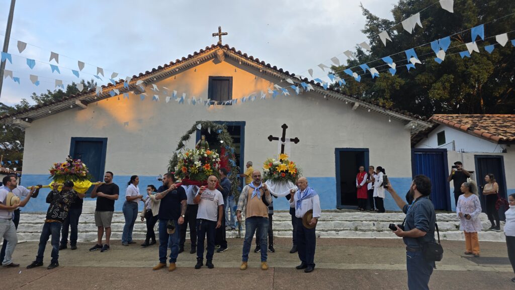 Com primeiro registro datado de 1734, a Festa de Santa Cruz nasceu no cruzamento entre a fé católica trazida pelos padres jesuítas, a espiritualidade dos povos indígenas catequizados na Aldeia de Carapicuíba e a herança dos mestiços que habitaram os sertões, arraiais e aldeias do interior paulista. Desse encontro de culturas surgiram práticas devocionais únicas — como a Dança de Santa Cruz e o Levantamento do Mastro — que resistem ao tempo e seguem sendo transmitidas de geração em geração pelas famílias tradicionais da comunidade, com destaque para a família Camargo.