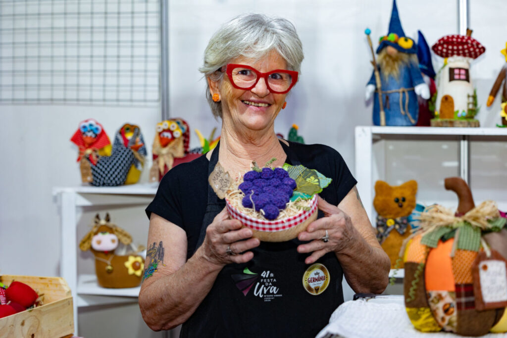 A visibilidade também é um dos grandes diferenciais para os artesãos do programa Jundiaí Feito à Mão. A artesã Miriam Fernandes, conhecida como Mia Vovó, conta que a Festa da Uva supera todos os outros eventos do ano em volume de vendas.