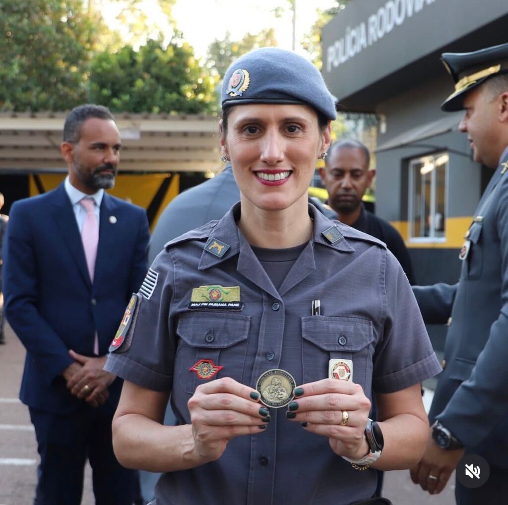 Durante a Solenidade de Valorização Policial Militar, o comandante do 4º Batalhão de Polícia Rodoviária, Tenente-Coronel PM Cambuí, realizou a entrega da tradicional Challenge Coin da unidade ao comandante do 11º BPM/I, Major PM Martinelli, e à subcomandante, Major PM Fabiana Pane. A cerimônia foi realizada na sede do batalhão, marcando um momento de respeito, honra e fortalecimento institucional.