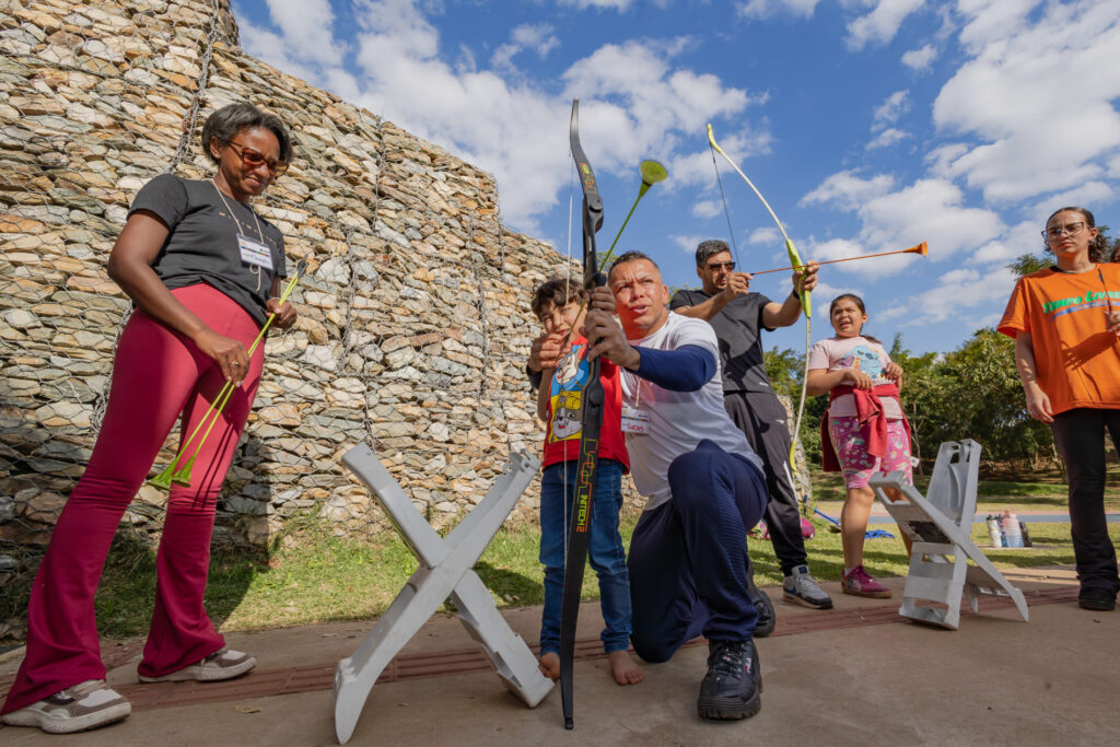 Próximo ao Parque Paca, os visitantes puderam participar dos Jogos com Regras, como o arco e flecha e o mini golfe. O professor de Educação Física Lucas dos Santos, que trabalha na Emeb Professora Maria Gemma Gennari Carturan, na vila Rossi, traçou um paralelo entre o acompanhamento das crianças no arco e flecha com o que desenvolve em sala de aula. “É uma experiência interessante, que aumenta o repertório das crianças com o trabalho de coordenação motora fina, para além do controle da força”, comentou.