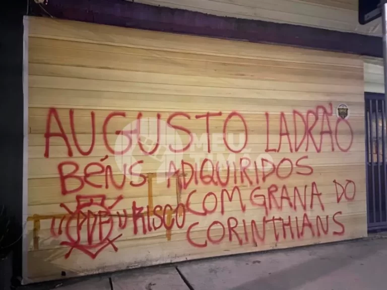 Um dia após Augusto Melo se tornar réu no caso VaideBet e ter gastos pessoais com o cartão corporativo expostos, um empreendimento ligado ao presidente afastado do Corinthians também foi pichado.