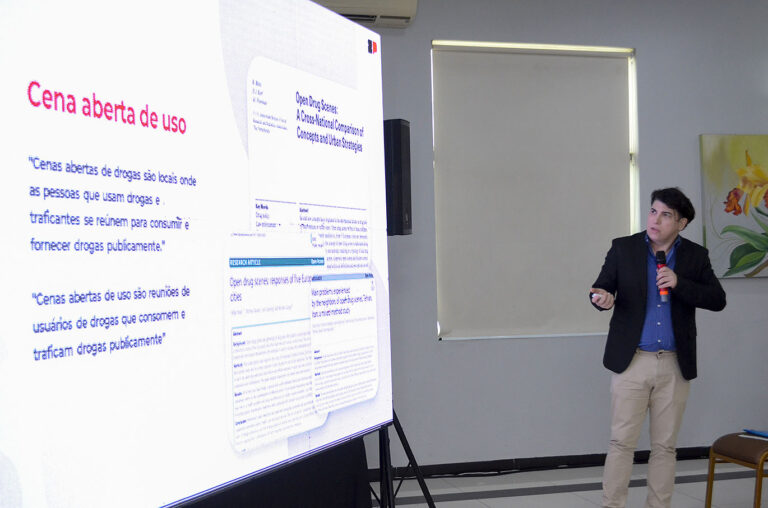Os servidores acompanharam palestra de Divane de Vargas, assessor técnico da Secretaria Estadual de Saúde, que detalhou a linha de cuidado adotada pelo Estado e sua participação na desarticulação da cena aberta de uso no centro da capital. Ele ressaltou a importância da integração entre setores e do acolhimento inicial aos usuários.