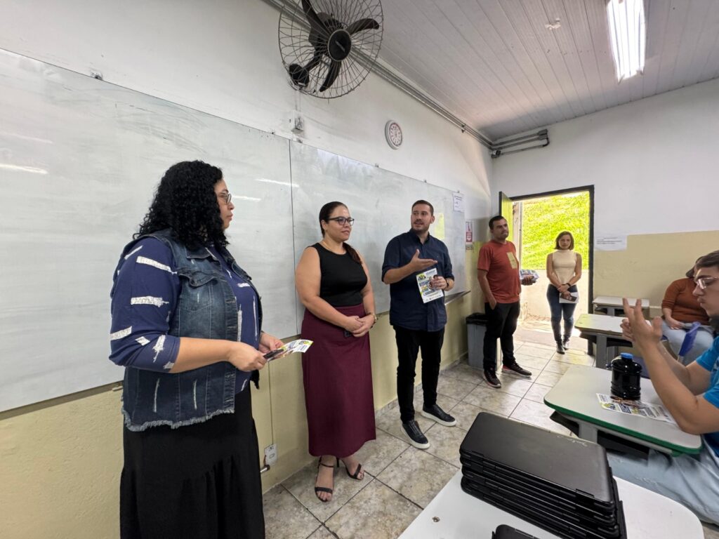 O vice-prefeito de Várzea Paulista, João Paulo de Souza, visitou os alunos do ensino médio da Escola Estadual Monsenhor Hamilton José Bianchi, na Vila Popular, para apresentar o projeto “Fala Várzea Paulista”. A iniciativa busca envolver a população no planejamento e no desenvolvimento do município por meio do Plano Plurianual (PPA) 2026-2029, da Lei de Diretrizes Orçamentárias (LDO) 2026 e da Lei Orçamentária Anual (LOA) 2026.