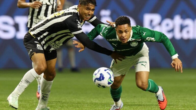 O Palmeiras venceu o Santos por 2 a 0, na noite desta quinta-feira (06), no Allianz Parque, e abriu vantagem na liderança do Campeonato Brasileiro. O confronto na capital paulista foi válido pela 32ª rodada da competição nacional. Vitor Roque marcou os dois gols da vitória e foi o nome do jogo.