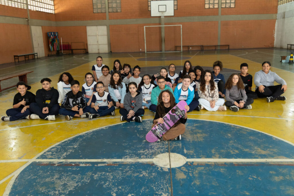 A EMEB Carlos Foot Guimarães promoveu uma vivência esportiva que integrou educação, esporte e comunidade escolar, com foco no skate como modalidade esportiva. A atividade teve como destaque a apresentação do aluno do 5º ano, Thomas Yukio, de 11 anos, que já acumula patrocinadores e conquistas em campeonatos pelo país. A ação reuniu turmas do período da manhã e contou com a participação da família do estudante.